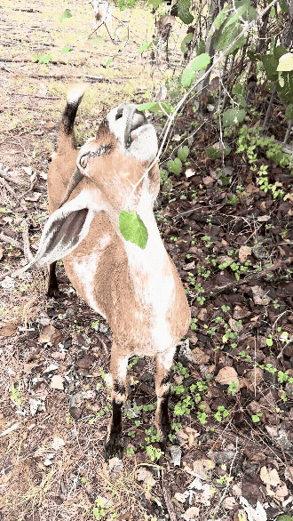Goats are specialists at eating pesky native nasties like poison oak & ivy, thorny greenbrier, stickyjack, brambles, and more (enjoying every minute, might we add). For more ground-level control, we have a few sheep that also like to get in on the action, uprooting unwanted grasses and other nonsense. If they’ve decided that smaller trees or larger vines are too tough to munch, we’ll bring a machete and remove the rest personally.